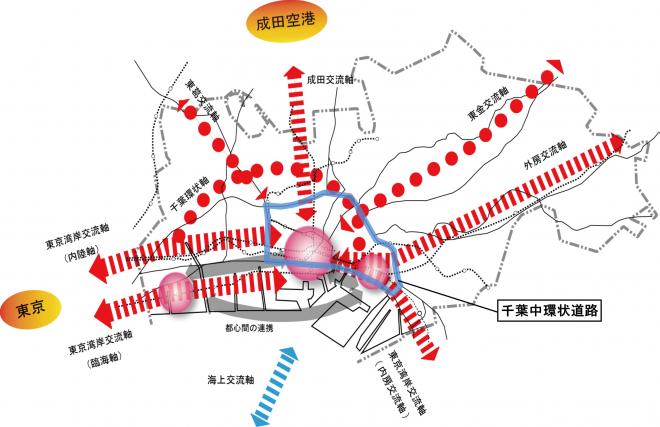 広域道路ネットワークの整備を進めるとともに、インターチェンジ周辺等にふさわしい物流などの新たな産業集積を図り、雇用や定住の促進により、地域の活性化を目指すため、千葉中環状道路等の放射状道路の強化を図る。
