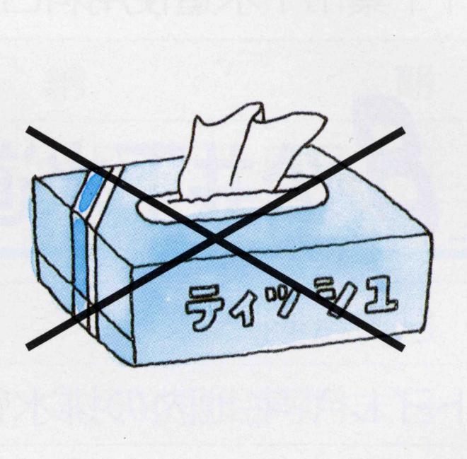 ティッシュペーパーや紙おむつは水に溶けないので、詰まりの原因になります。