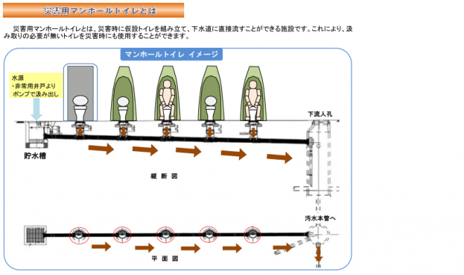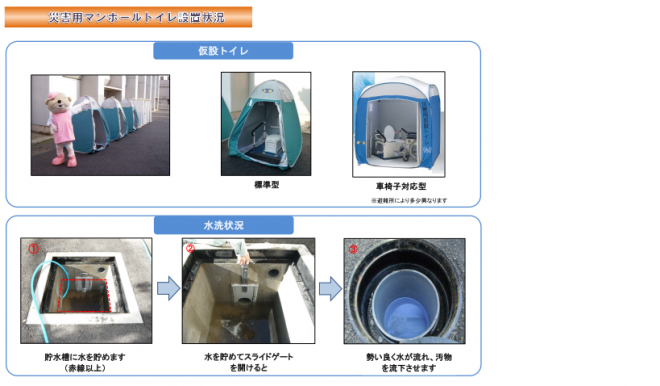 そのため、災害時にも困らないよう災害用マンホールトイレの整備を進めています。