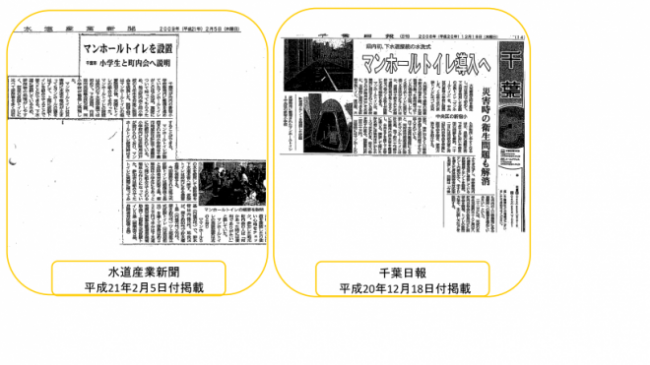 災害用マンホールトイレの説明会は適時行っており、新聞4社(水道産業新聞・千葉日報・日刊建設新聞・読売新聞)にも掲載されました。