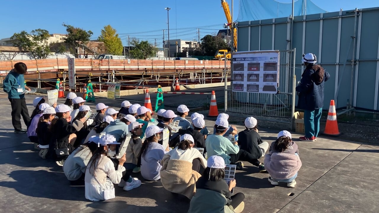 貯留槽本体の整備が進んだため、地元の小学校や住民の方を対象に現場見学会を行いました。