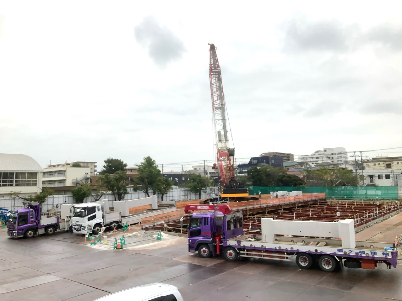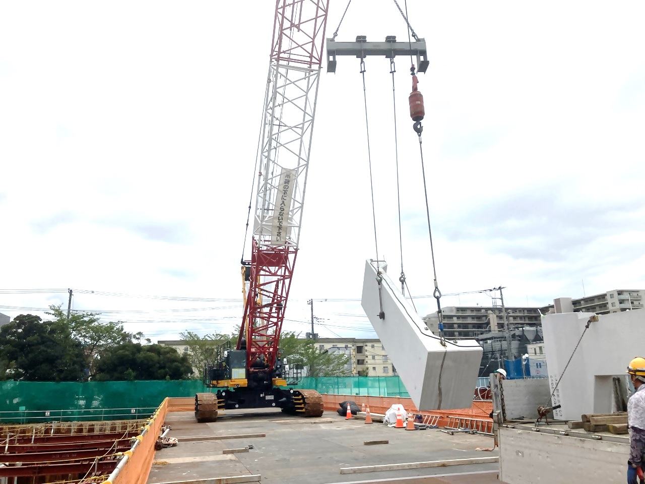 この現場では、工場で製作したコンクリートのブロック(部材)を使用しており、短期間で貯留槽本体を整備することができます。