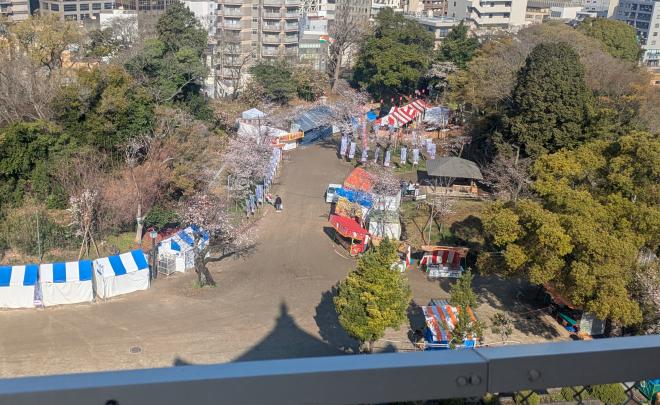 さて現在、郷土博物館は展示リニューアルのため閉館しておりますが、館の外では「千葉城さくら祭り」が開催されております。今週は雨天が続き、人出も今一つでありましたが、本日あたりからようやく暖かさが戻り、桜も8分咲きとちょうど見ごろとなっており、屋台も立ち並んで、亥鼻山はお祭りの雰囲気一色となっております。