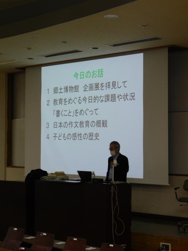 千葉市の教員でもいらした先生から、「書くこと」から眺めた教育をめぐる今日的課題や状況、日本の作文教育の概観、子どもの感性の歴史など、特別展の