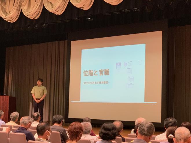 武蔵大学人文学部教授の桃崎有一郎氏に、武士の起源についてご講演いただきました。平安時代中期における武士の起源や発展の歴史を系図等を駆使しながら「武士がどこからどう生まれてきたか」という問いに対して、果敢に切り込んで説明をいただきました。参加されたみなさまにもお楽しみいただけたのではないかと推察いたします。