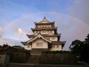 夕方、郷土博物館に虹の橋が架かりました。