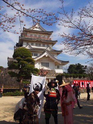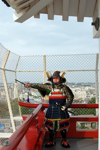千葉氏の歴史を学んだ後に、甲冑を着て“城主”に変身、天守閣から“城下”を眺めたり、“わが城”と記念写真を撮ったり。最後は博物館向かいのいのはな亭でお団子に舌鼓。