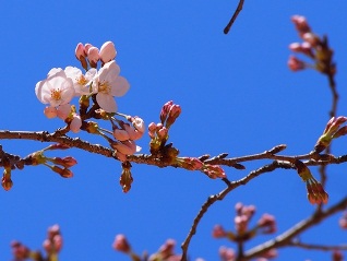 本日もいいお天気で、昨日咲いていなかった枝にも桜の花がみられました。