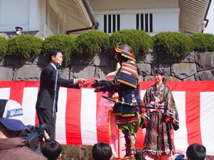 当館館長から城主の任命状をお渡しし、亥鼻公園と城内(博物館内)でお客様をおもてなし。