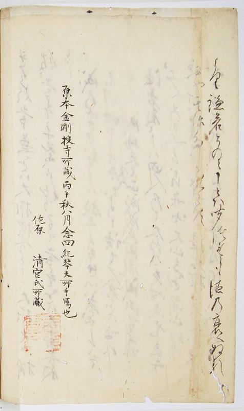 原本金剛授寺所蔵、丙午(弘化3年=1846)秋八月念四紀琴夫所手写也、