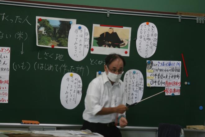 3年生の「総合的な学習の時間」を進めるにあたって、その前提として地域の偉人である青木昆陽のことについて詳しい人から学びたいという要望で出前授業を行った。