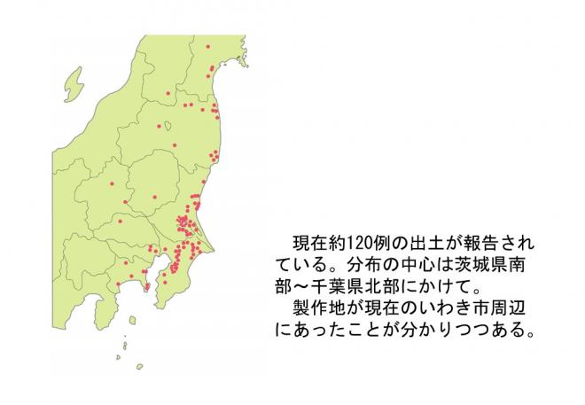 最近、その製作地が明らかになってきており、東北地方南部の太平洋沿岸(現在のいわき市周辺)で盛んに製作され、それが広範囲に流通していたことが分かってきており、本資料もいわき市周辺で製作されたものです(第4図)。