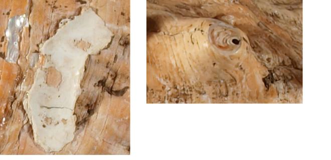 | 左:写真5 付着した貝殻の摩滅 右:写真6 水管部分の摩滅 |