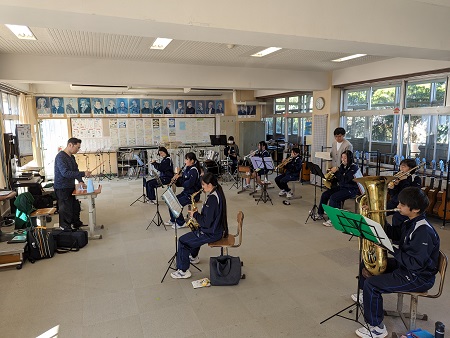 地域楽団の方による指導で熱心に練習する吹奏楽部の生徒のみなさん