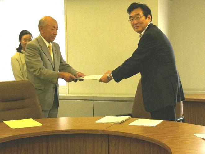 真砂地区と高洲・高浜地区の「学校統合に関する要望書」の提出