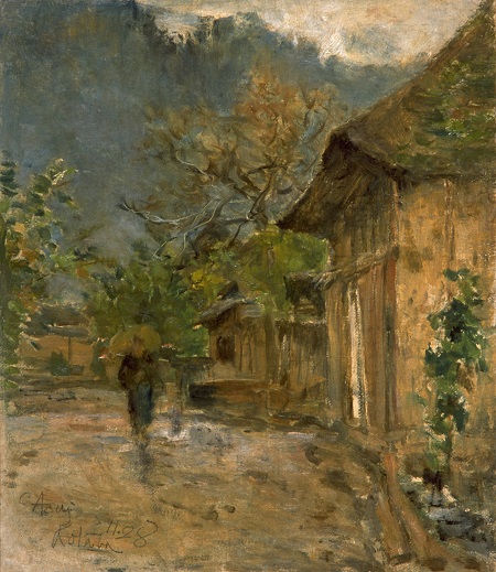 作者である浅井忠は、佐倉藩士・浅井恒明の長男として生まれ、少年時代を佐倉で過ごした、千葉県を代表する明治期の洋画家です。工部美術学校時代に師事したイタリア人教師アントニオ・フォンタネージの画風に学び、農村・漁村の風景を好んで描いています。