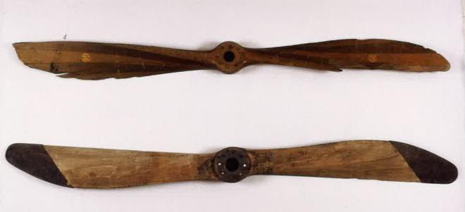 プロペラ2点のうち1点は、翼部に「□□寒川 白戸飛行場 高橋信夫」の墨書きがあり、白戸の弟子である高橋信夫の使用機のものと考えられます。後に、中央区登戸の登渡神社に奉納されました。