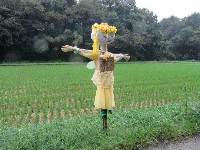 団体代表者の方のお話では、「7月初旬にかかしを制作・設置した後にかか しアートまつりを開催し、町内自治会長や地元商店街会長などに審査委員をお願いして、9月中旬の誉田地区子供会主催のスポーツ大会の開会式で表彰(個人の部:1~3位)しました。かかしの制作を通して地域の親睦につながり、散歩道の環境整備や地域の話題作りにも寄与できるよう頑張ります。」 との意気込みを伺いました。