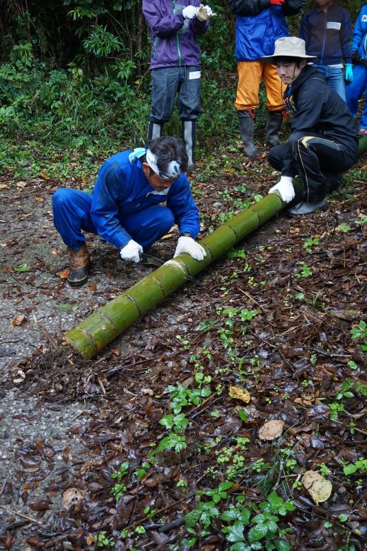 今回は、10月14日に活動場所である上大和田町にある古民家を訪問し、取材をさせていただきました。当日は、「竹飯ごう作り」をテーマとした体験型ワークショップが開催され、団体スタッフを含めて15人が参加していました。専門知識を有した団体スタッフの説明に従い、竹の切り出しから始まり、のこぎりなどを使いながら竹飯ごうの制作に取り組んでいました。
