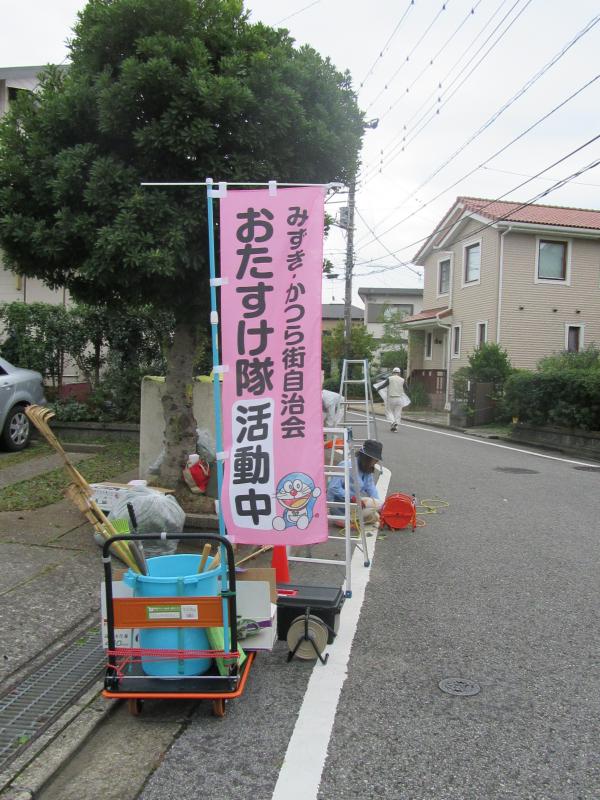 「みずき・かつら街おたすけ隊」は、ひとり暮らしや高齢者のみの世帯が多くなってきている町内自治会内の高齢者が日常生活で困っていること(庭掃除、電球・蛍光灯の交換、障子・網戸の張り替えなど)をお手伝いすることにより、住み慣れた地域で安心して暮らし続けられるよう支援しています。