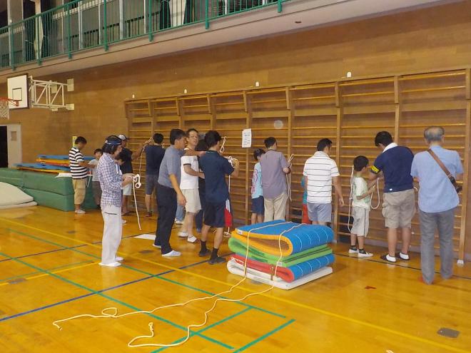小谷小学校避難所運営委員会では、避難所での生活を体験するために、避難所に宿泊する訓練を平成27年から毎年行っていて、平成30年は8月25日(土曜日)から26日(日曜日)にかけて実施されました。