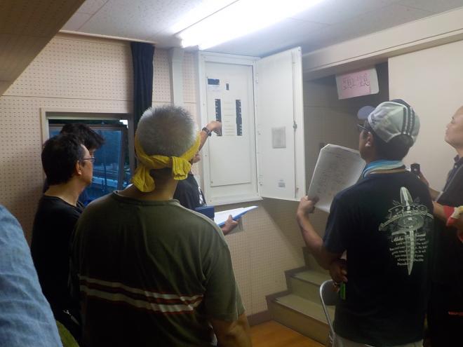 避難所を開設する訓練に先立ち、太陽光発電・蓄電池システムの運用訓練を行い、通常電源から太陽光による蓄電池に切り替える訓練を行いました。