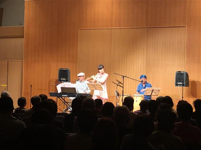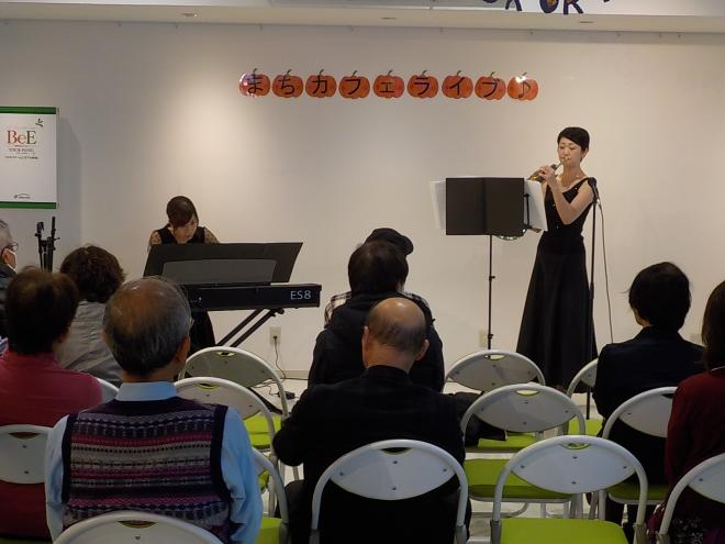 鎌取コミュニティセンター会場では、開会宣言が行われた後、フルート奏者・深山真里さんによるスペシャルライブが開かれました。