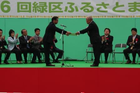 また今年度は、緑区ふるさとまつりの発展にご功労いただいた元実行委員の方に、緑区長から表彰状が贈られました。