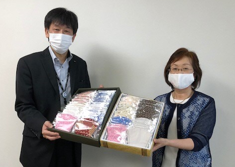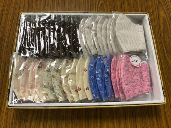 同施設の大原施設長にお渡ししたところ、「緑区内には知的障害者の入所施設が4か所あり、代表して受け取らせていただきます。マスクの入手が困難な中、とても素敵なマスクをいただき、感激しました。職員も利用者も喜ぶと思います。心より感謝いたします。」とのことでした。