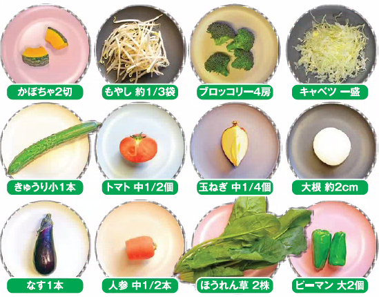 緑黄色野菜2皿、淡色野菜3皿を目安にとりましょう。
