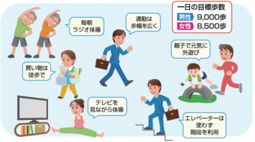 近場の買い物は徒歩で行く、通勤は駅まで歩く、テレビを見ながら体操など、生活の中で無理せず体を動かせる方法を考えてみましょう。