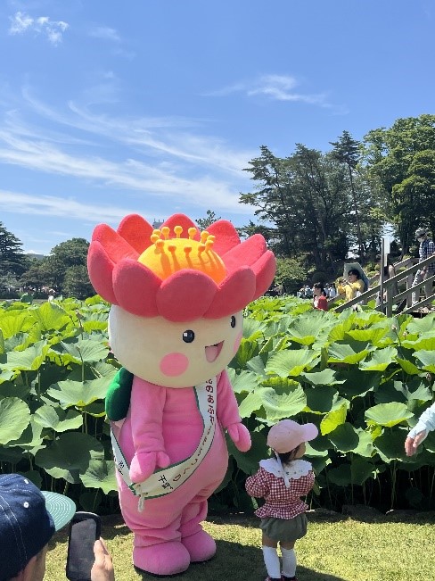 ちはなちゃんが蓮華亭横の芝生広場に登場します。