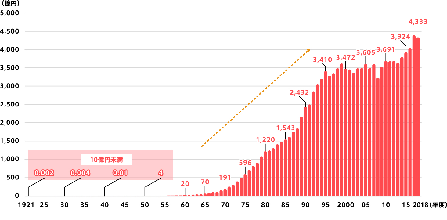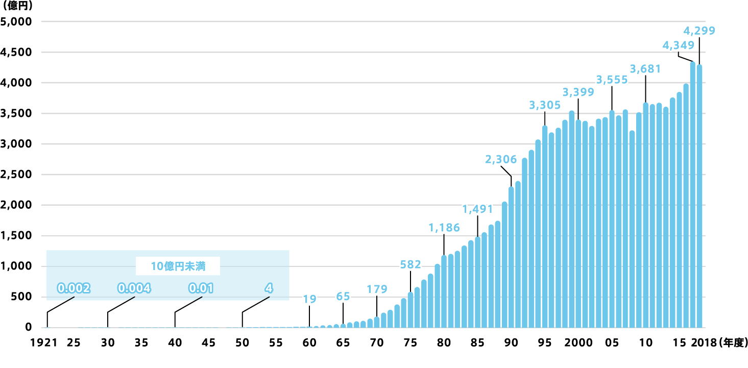※1921(大正10)~1948(昭和23)年度は予算額、1949(昭和24)年度以降は決算額
