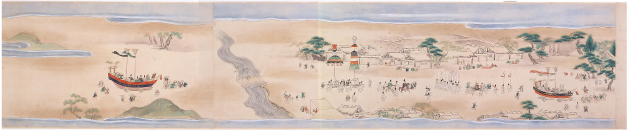 江戸時代の妙見大祭では、神輿の行列の前と後ろに飾り幕を付けた2隻の大舟が出たんじゃよ。