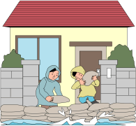 浸水には土のうや水のうが有効です。まだ水深が10cm以内の初期の段階なら、家庭にあるプランター、レジャーシート、ゴミ袋などを利用した応急処置が可能です。