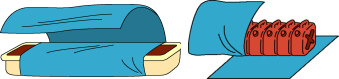 土を入れたプランターを横に並べ、レジャーシートを巻いて補強する。プランターの代わりに水を入れた防災タンク(ポリタンク)などを連結し、レジャーシートを巻けば、土のう代用品として利用できます。 |