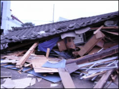 地震で崩壊した家屋