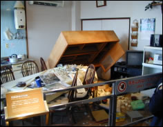 地震で家具が転倒した室内