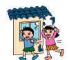 外に逃げるときは、瓦やガラスなどの落下物に注意し、落ち着いて行動する。