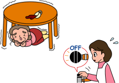(余裕がなければ手近の座布団などで頭を保護する。) ●火の始末はすみやかに。
