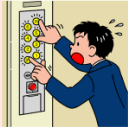 ●地震時管制運転装置がついているものは、自動的に最寄りの階に止まるので、あわてずに。装置がついていない場合は、すべての階のボタンを押し、一番近い階で降りる。