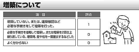 説明3一般的に新築してから15年以上経過すれば増築を行う事例が多いのが事実ですが、その増築時、既存部の適切な補修・改修・増築部との接合をきちんと行っているかどうかがポイントです。 |