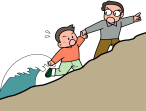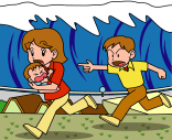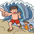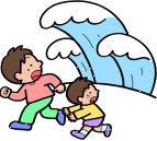 津波は2回、3回と繰り返し襲ってきます。1回目で安心しないこと。波が落ち着くまで注意し、警報・注意報が解除されるまで海岸に近づかないようにしましょう。 |