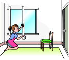 屋内では、窓閉め、目張りにより室内を密閉し、できるだけ窓のない中央の部屋に移動しましょう。 |