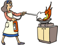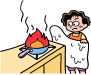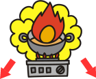 いきなり戸を開けると、火勢が強まる危険があります。消火器や水を用意して、ガスの元栓を締め、徐々に戸を開けて一気に消火しましょう。 |