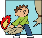 消火器があれば火元に向けて噴射を。ない場合は、毛布などをストーブにかぶせ、バケツの水を真上から一気にかけます。火が消えた後も、天板の余熱で再発火するケースがあるので注意を。 |