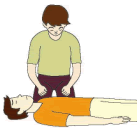 1. 準備平らな場所にあお向けに寝かせ、救助者はそのわきで両膝立ちの姿勢をとる。 ![]() |