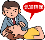 ●気道を確保して、呼吸の有無を確認し、119番通報を。 |