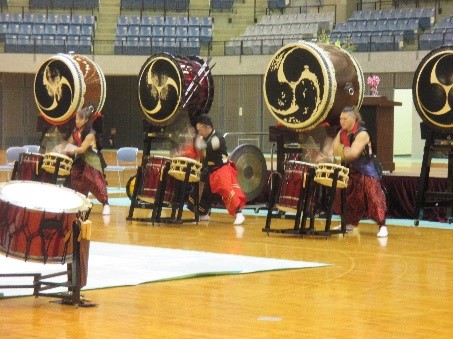 6年生の児童が大きな舞台でも堂々と発表する姿が立派でした。「暁」のみなさんによる和太鼓や書道のパフォーマンスでは子供たちから「すごい!」と歓声があがり、大変盛り上がりました。