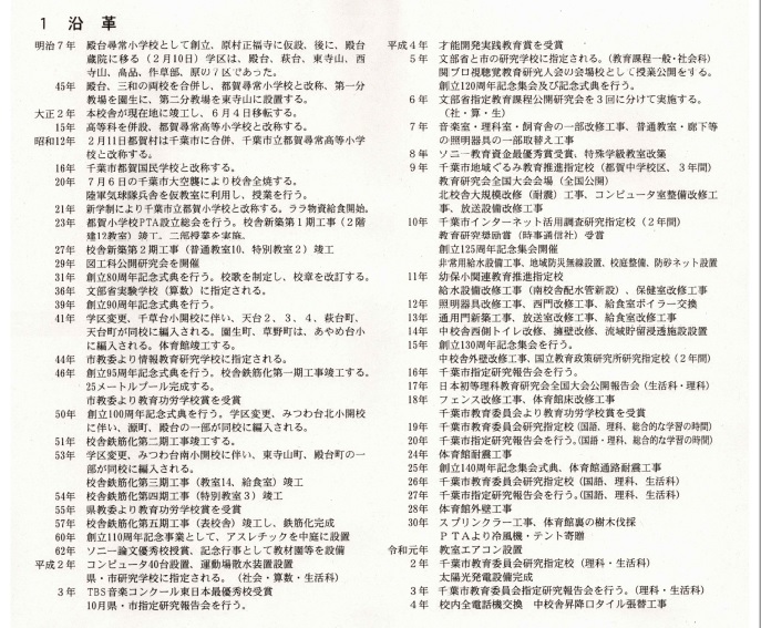 都賀小学校は、殿台尋常小学校として、明治7年2月10日にできました。明治45年に三和尋常小学校と一緒になり、都賀尋常小学校になりました。その後、都賀尋常高等学校、都賀国民学校と名前を変え、昭和22年に今の千葉市立都賀小学校になりました。